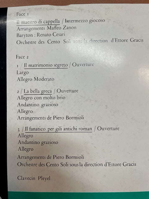 Vinyle Domenico Cimarosa direction Ettore GracisDistributeur :Editions Club françaisPrix habituel €7,00 EURPrix habituelPrix unitaire par-