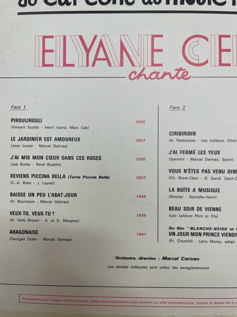 Vinyle Elyane Celis chanteDistributeur :Éditions EMIPrix habituel €7,00 EURPrix habituelPrix unitaire par-