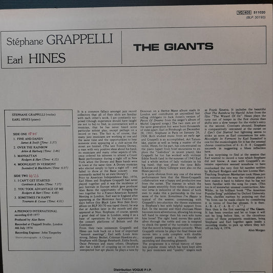 Vinyle Earl Hines et Stéphane Grappelli The giantsDistributeur :Label VoguePrix habituel €10,00 EURPrix habituelPrix unitaire par-