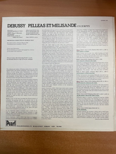 Vinyle Debussy Pelléas et Mélisande, extraitsDistributeur :Editions PearlPrix habituel €7,00 EURPrix habituelPrix unitaire par-