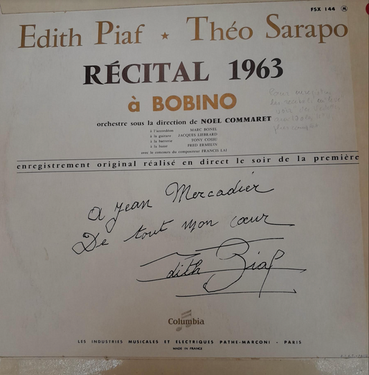 Vinyle Edith Piaf - Théo Sarapo Récital Bobino 1963Distributeur :Label ColumbiaPrix habituel €8,00 EURPrix habituelPrix unitaire par-