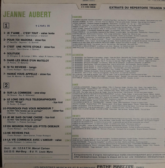 Vinyle Jeanne Aubert, chanson françaiseDistributeur :Editions Pathé MarconiPrix habituel €7,00 EURPrix habituelPrix unitaire par-