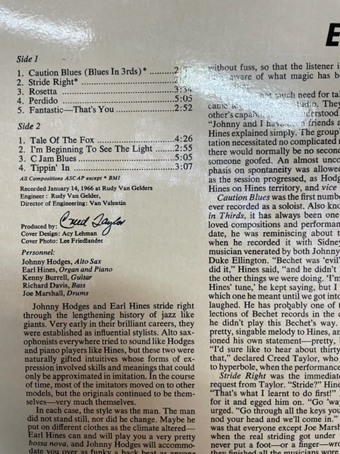 Vinyle Johnny Hodges - Earl Hines Stride RightDistributeur :Vinyle VervePrix habituel €8,00 EURPrix habituelPrix unitaire par-