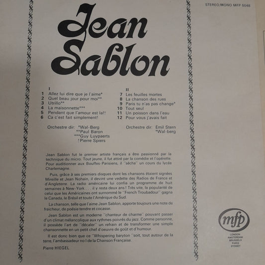 Vinyle Jean Sablon Les feuilles mortesDistributeur :Editions MFPPrix habituel €6,00 EURPrix habituelPrix unitaire par-