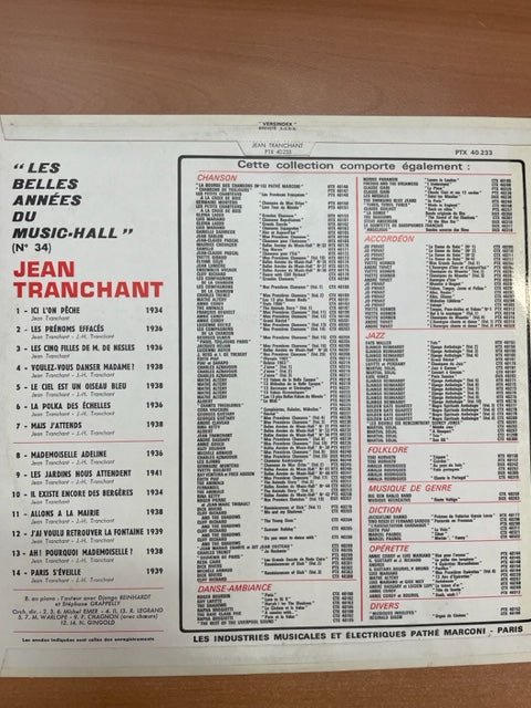 Vinyle Jean Tranchant Les belles années du Music-Hall n°34: Jean TranchantDistributeur :Editions Pathé MarconiPrix habituel €7,00 EURPrix habituelPrix unitaire par-