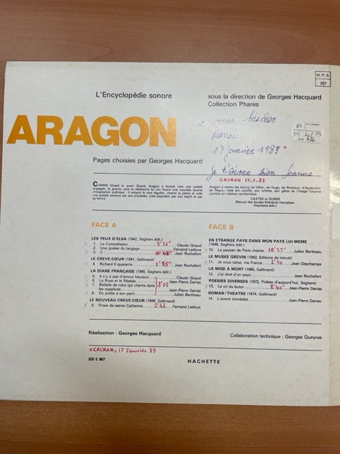 Vinyle L'encyclopédie sonore Aragon, pages choisies par Georges Hacquard