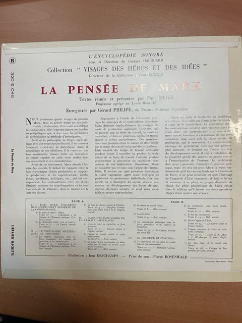 Vinyle Karl Marx L'encyclopédie sonore : La pensée de Marx lecture Gérard Philipe