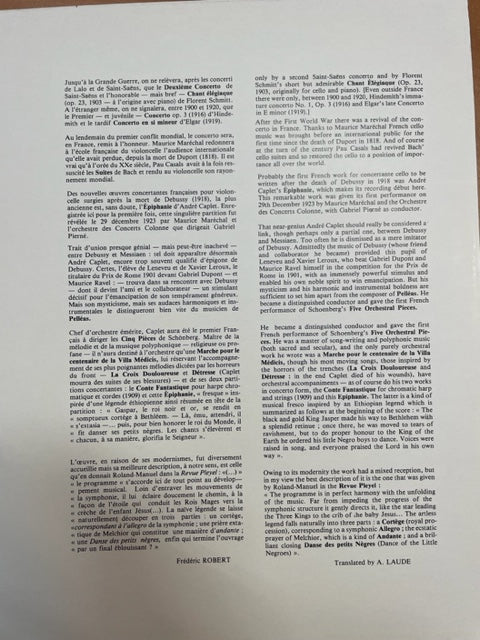 Vinyle Lalo - Caplet Concerto pour violoncelle et orchestre - Epiphanie pour violoncelle et orchestre