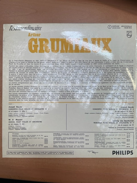 Vinyle l'extraordinaire Arthur Grumiaux Haydn Concertos n° 1 & 2 - Mozart Adagio - Beethoven Romance n° 2