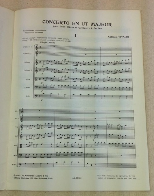 Vivaldi Antonio Concerto en Ut Majeur pour deux flûtes et orchestre à cordes