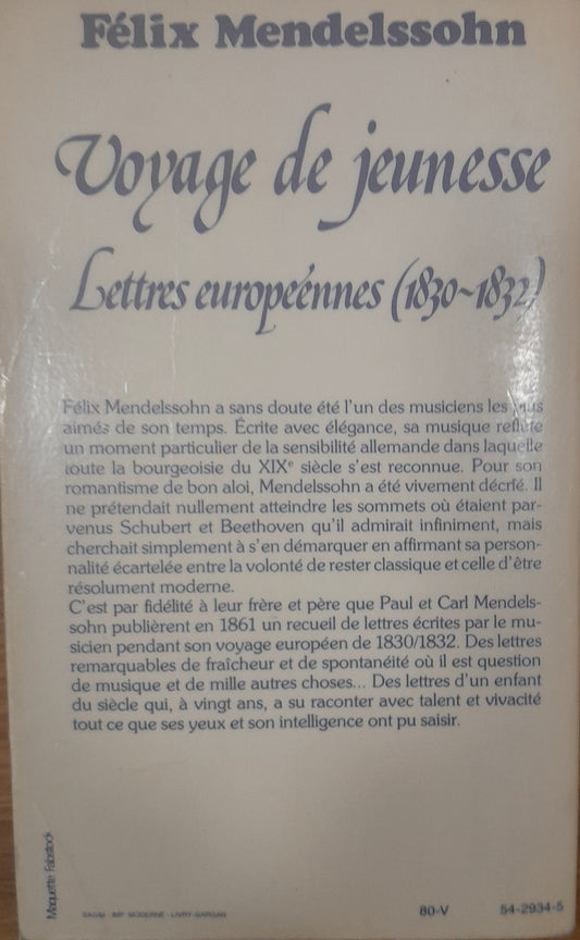 Voyage de jeunesse - Lettres européennes (1830-1832) livre de Félix Mendelssohn