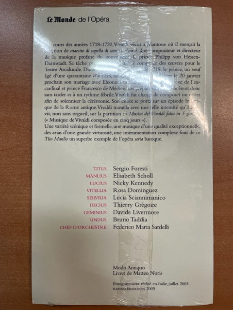 Vivaldi Tito Manlio - livret français + 2 CD