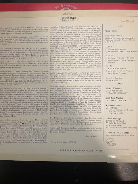 Vinyle Yvonne Printemps chante Les trois valses