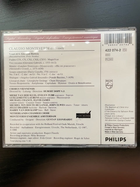 CD Claudio Monteverdi Vespri di S.Giovani Battista direction Gustav Leonhardt
