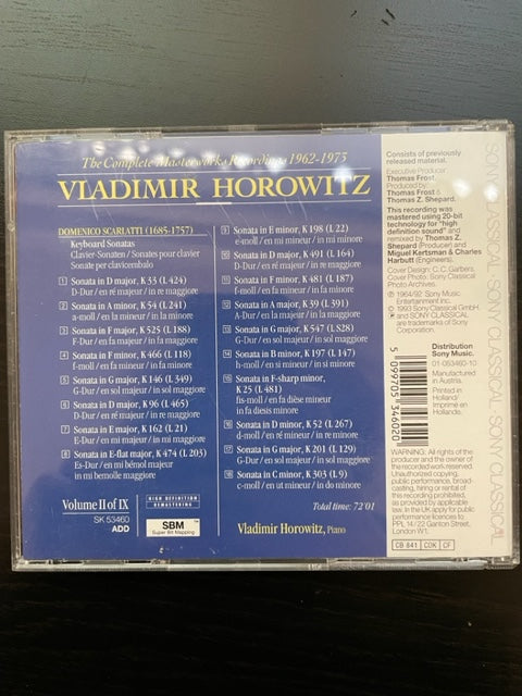 CD Domenico Scarlatti 18 Keyboard sonatas Vladimir Horowitz au piano