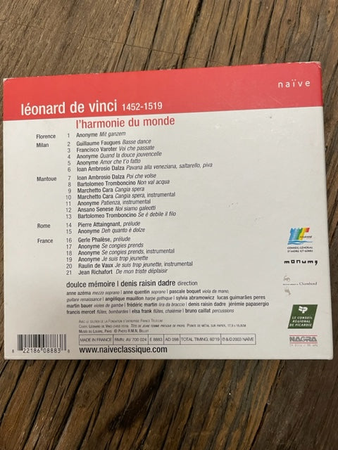 CD Doulce Mémoire Léonard de Vinci l'harmonie du monde