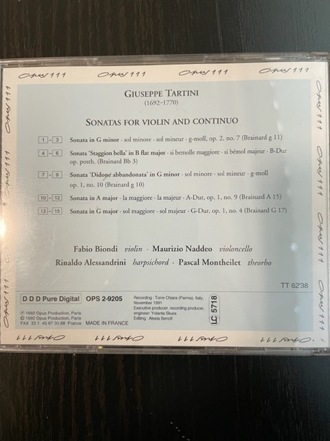 CD Giuseppe Tartini Sonatas for violin and continuo Fabio Bondi au violon