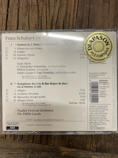 Cd Schubert Quintette opus 163 Symphonie n°5 collection Pablo Casals