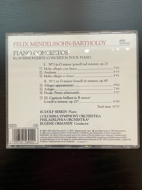 CD Rudolf Serkin, Eugène Ormandy Mendelssohn Piano concertos n° 1 et 2