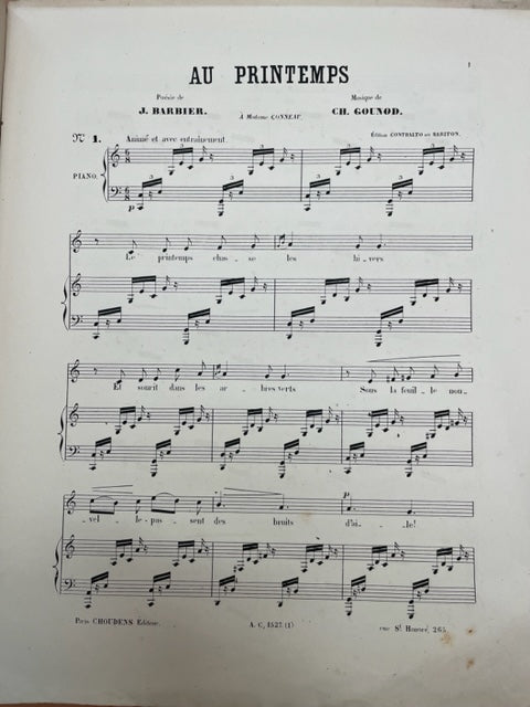 Charles Gounod Au Printemps, mélodie pour chant et piano
