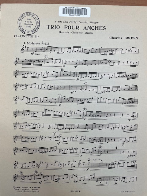 Charles Brown Trio pour anches Hautbois, Clarinette et Basson