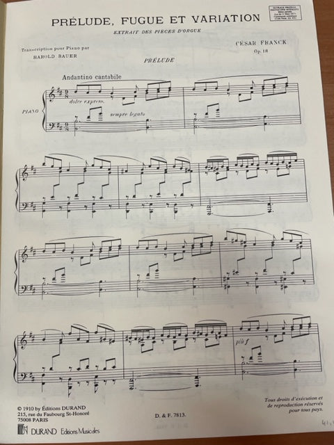 César Franck prélude, fugue et variation opus 18 partition pour orgue