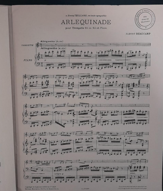 Albert Beaucamp Arlequinade pour trompette en Ut (ou sib) et piano