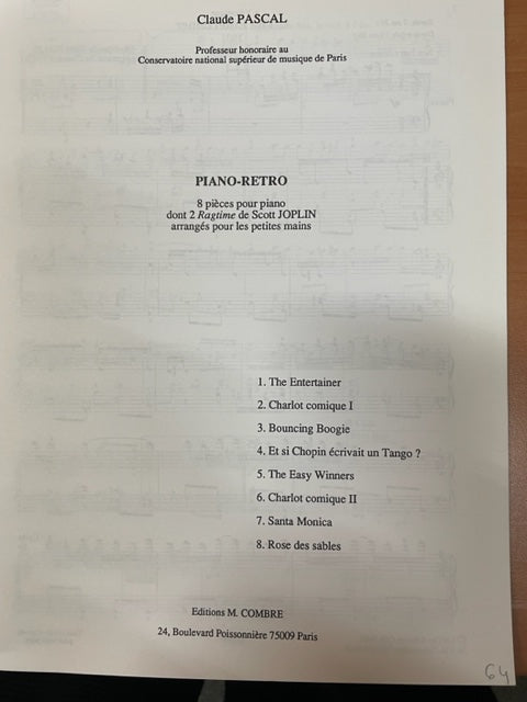 Claude Pascal Piano-Retro 8 pièces pour piano
