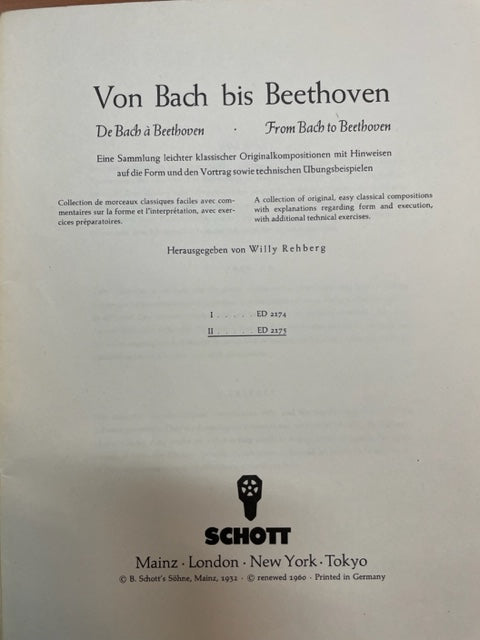 De Bach à Beethoven volume 2 Recueil de partition piano