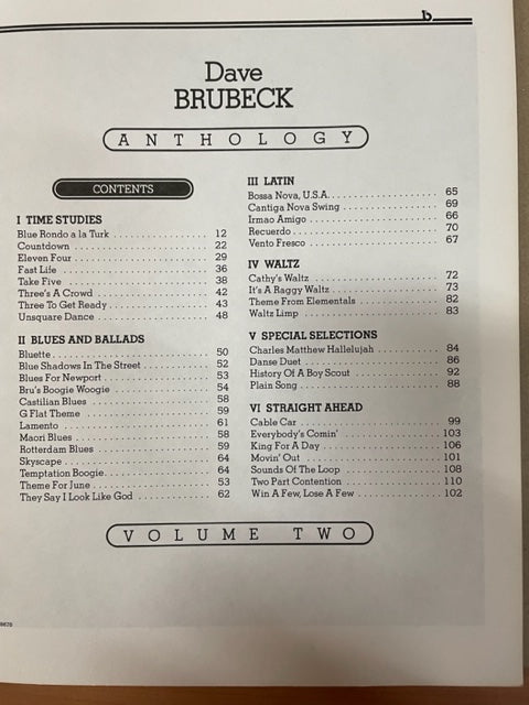 Dave Brubeck Anthology volume 2 partition piano guitare