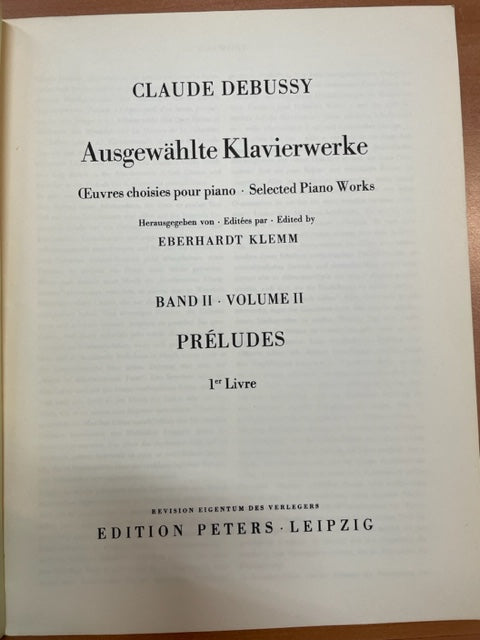 Debussy Oeuvres pour piano volume 2 Préludes 1er livre