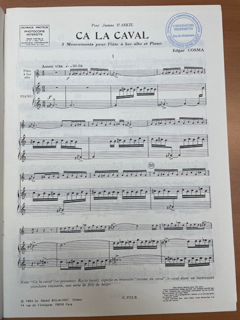 Edgar Cosma Ca la Caval pour flûte à bec et alto