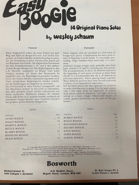 Easy Boogie, 14 original piano solos, book 1 partition de Schaum W