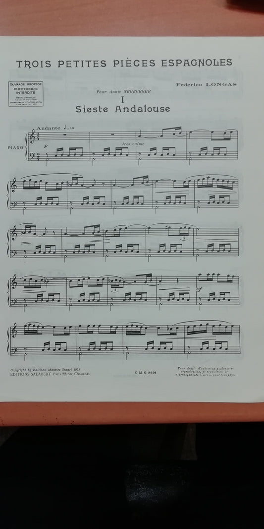 Federico Longas 3 Petites Pièces Espagnoles partition piano
