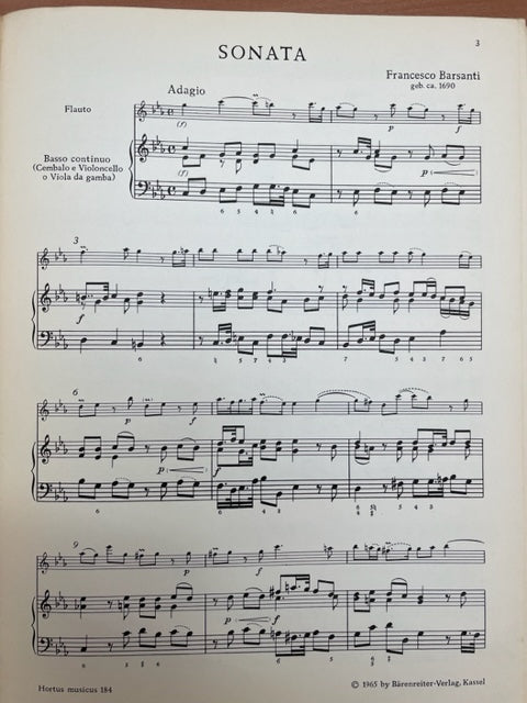 Francesco Barsanti Sonate en Do Majeur pour flute à bec ou flute traversière et piano