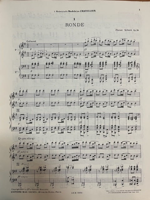 Florent-Schmitt Sur cinq notes, petite suite pour piano 4 mains
