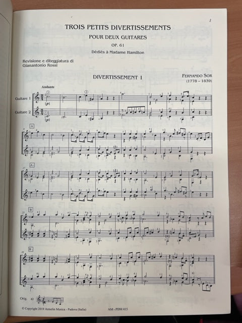 Fernando Sor 3 petits divertissements pour 2 guitares opus 61