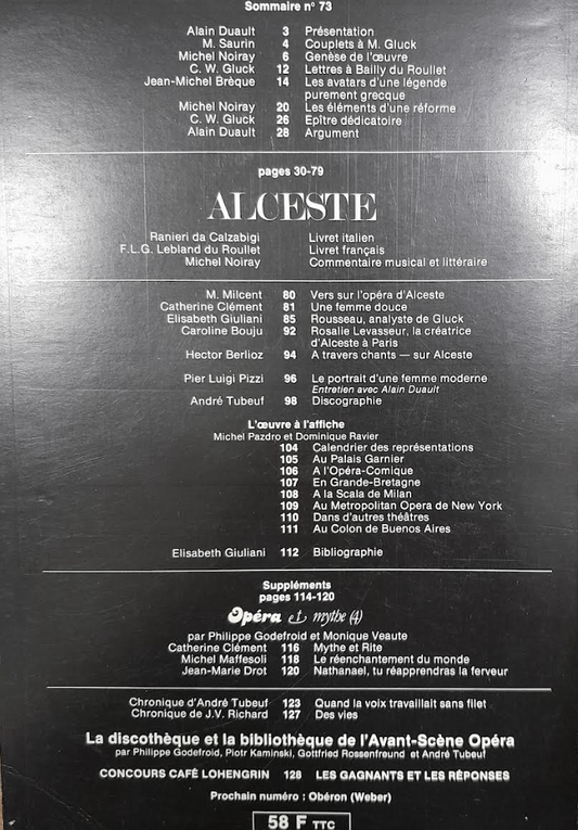 Gluck Alceste Revue "Avant-scène" opéra n° 73
