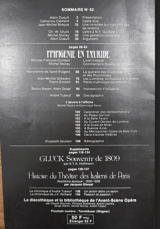 Gluck Iphigénie en Tauride.Revue "Avant-scène' n° 62