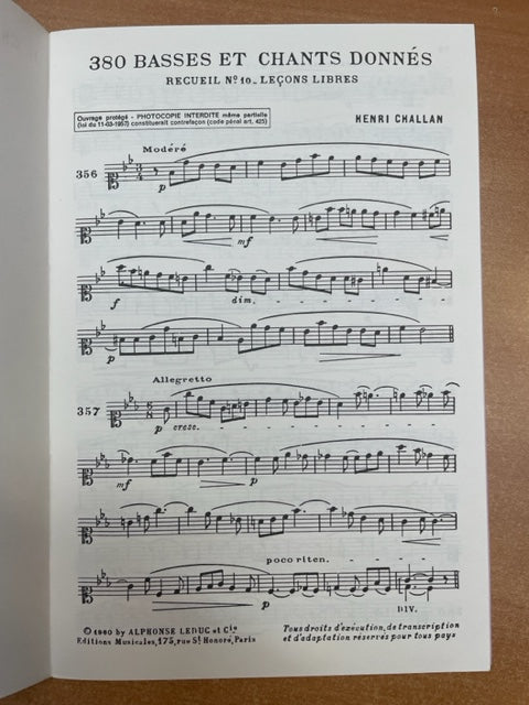Henri Challan 382 basses et chants donnés vol 10A - Textes