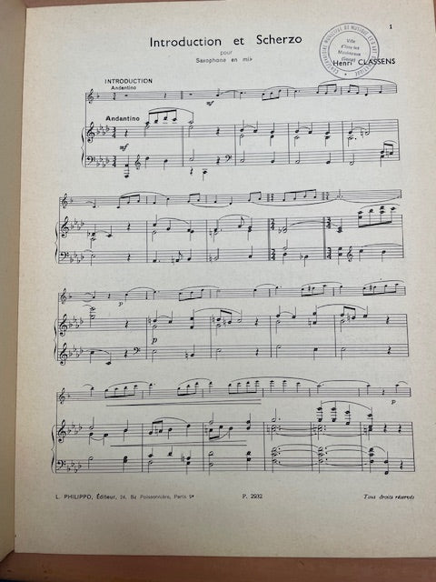Henri Classens Introduction et scherzo pour saxo alto mi bémol