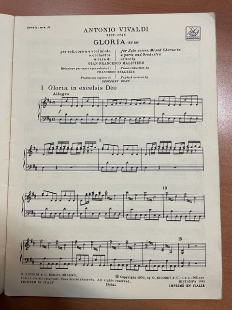 Antonio Vivaldi Gloria RV 589 réduction choeur et piano