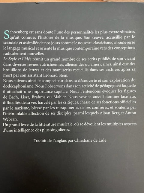 Arnold Schoenberg Le style et l'idée