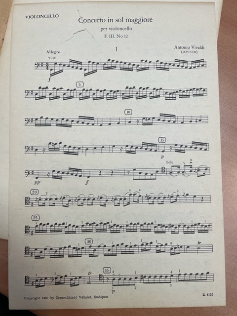 Antonio Vivaldi Concerto in sol maggiore per violoncello e pianoforte