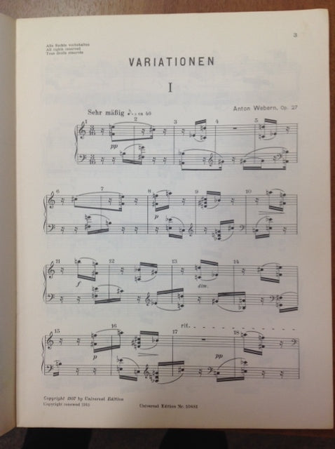 Anton Webern Variationen für Klavier opus 27 partition piano