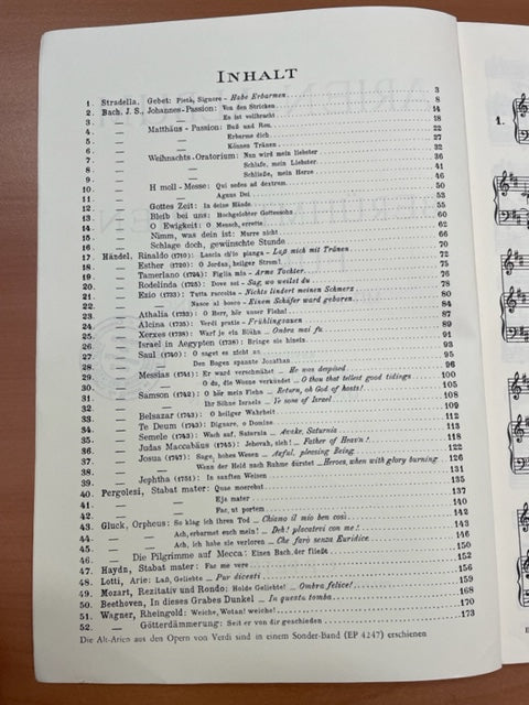 Arien Album - Partition pour voix Alto et piano aux éditions Peters