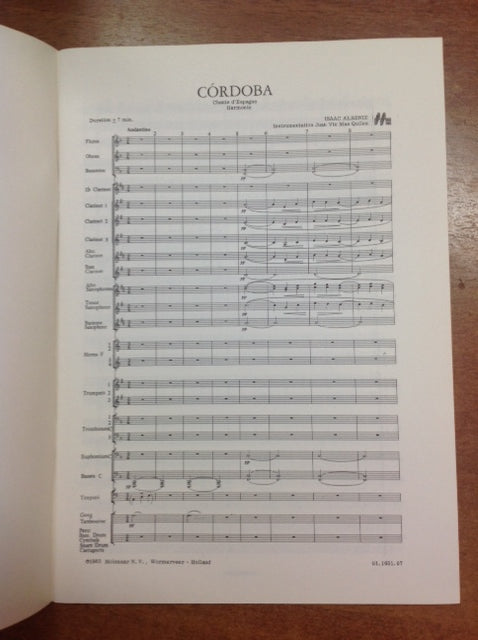 Isaac Albeniz conducteur grand format Cordoba 4e mouvement de Chants d'Espagne opus 232 n° 4