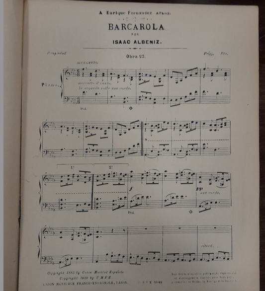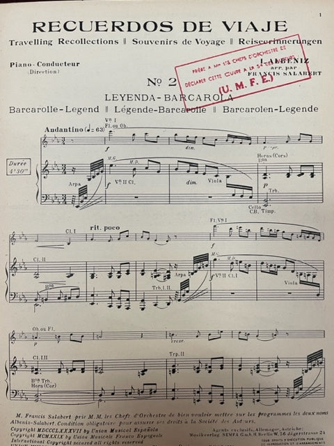 Isaac Albeniz Recuerdos de viaje n° 2 Legende-barcarolle conducteur et parties