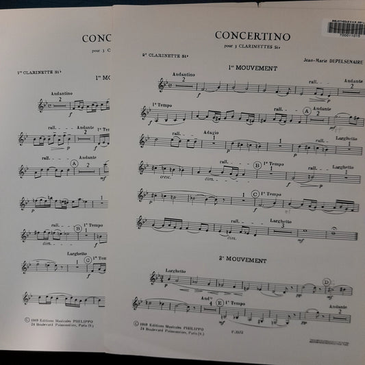 J-M Depelsenaire Concertino pour 3 clarinettes en sib et piano