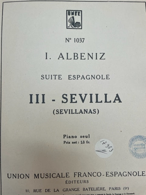 Isaac Albeniz Suite espagnole volume 3 Sevilla (Sevillanas) partition piano